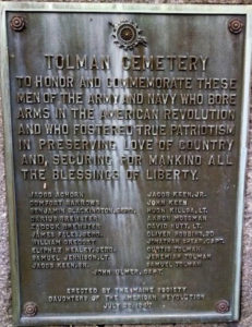 | Jennie Tillson White | 1899-1901 | Purchased markers for 12 Revolutionary Soldiers buried in Tolman Cemetery — Real Daughter Eliza Kalloch Perry Thomas died in 1900 |